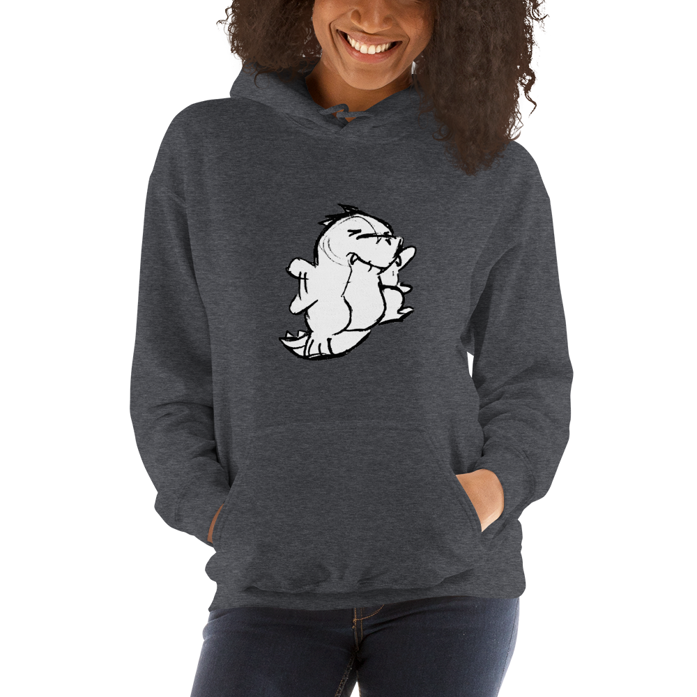 This cozy hoodie features a little Stubby trying his best to fly. 🐊