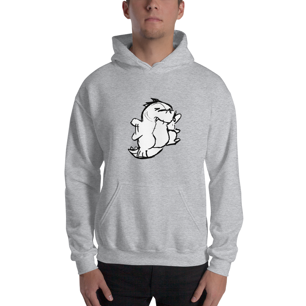 This cozy hoodie features a little Stubby trying his best to fly. 🐊